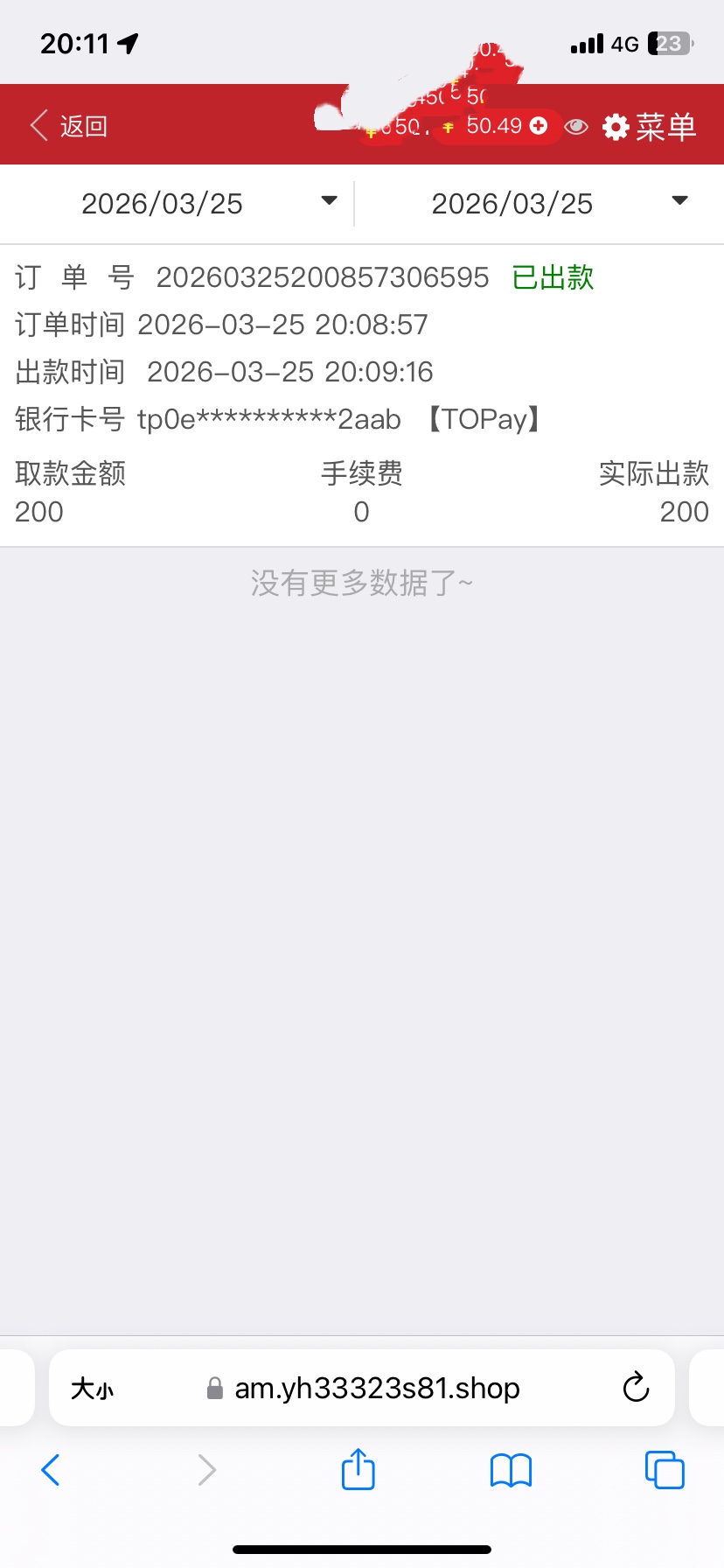 出款情况:自测(