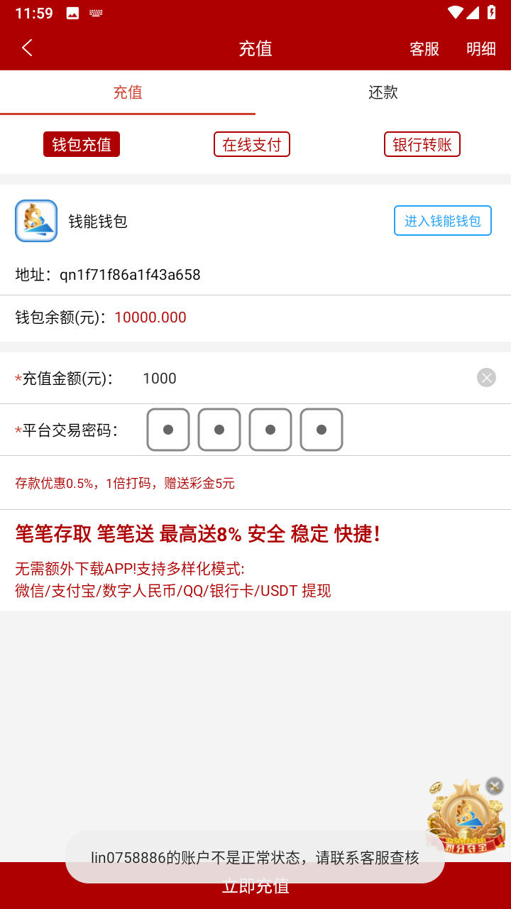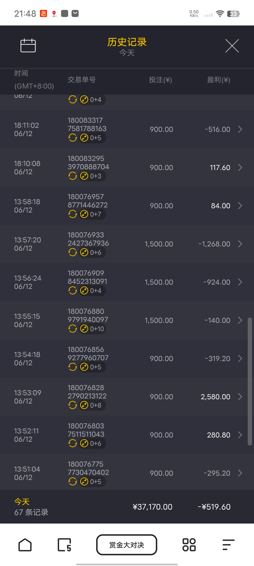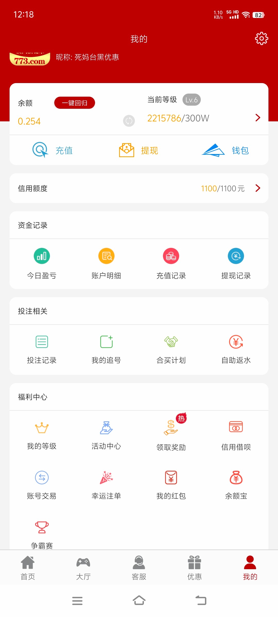 被黑1888 事情是这样的 从白嫖开始玩 500本金打到10w 充充提提 总体来说还是赚了 一万多 守不住两个小时送回去8个多 前前后后充值有50万左右 提现也差不多 明摆着黑优惠 奉劝大家不要赌了 真的看不到未来