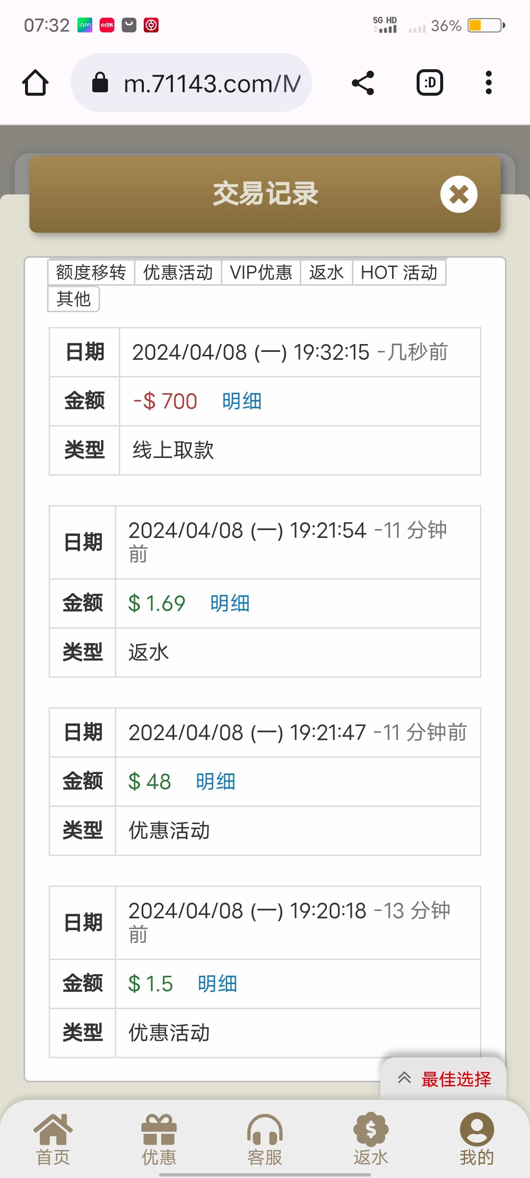第一个平台打到500,后面陆陆续续又回去200,然后3016,拉麻将2,两块钱平拉倒300,然后四块钱进去,700出来