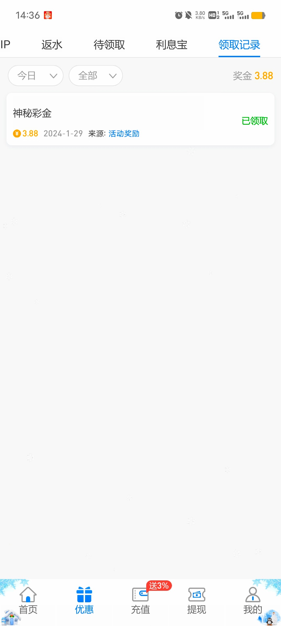 云顶送的彩金出了1k 充2000赢8w 走咯