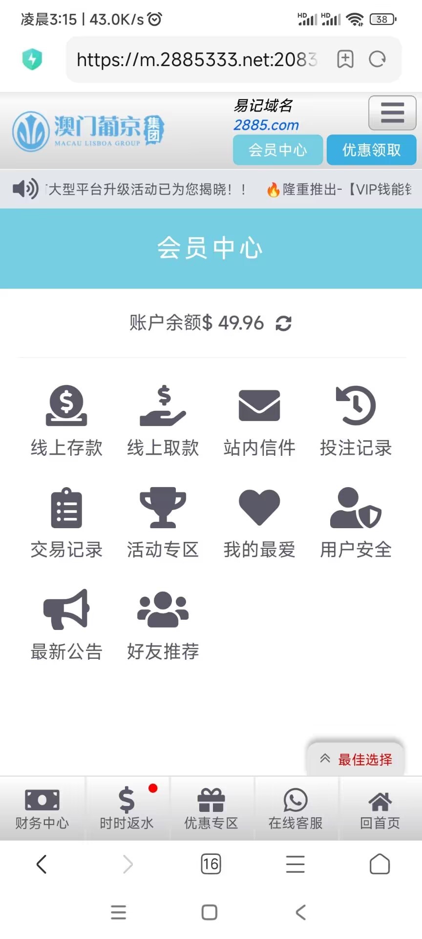 野鸡台她妈的都能提三两百,你妈逼推的新亚充了2000一个逼都没提款过,唯一一次还被黑