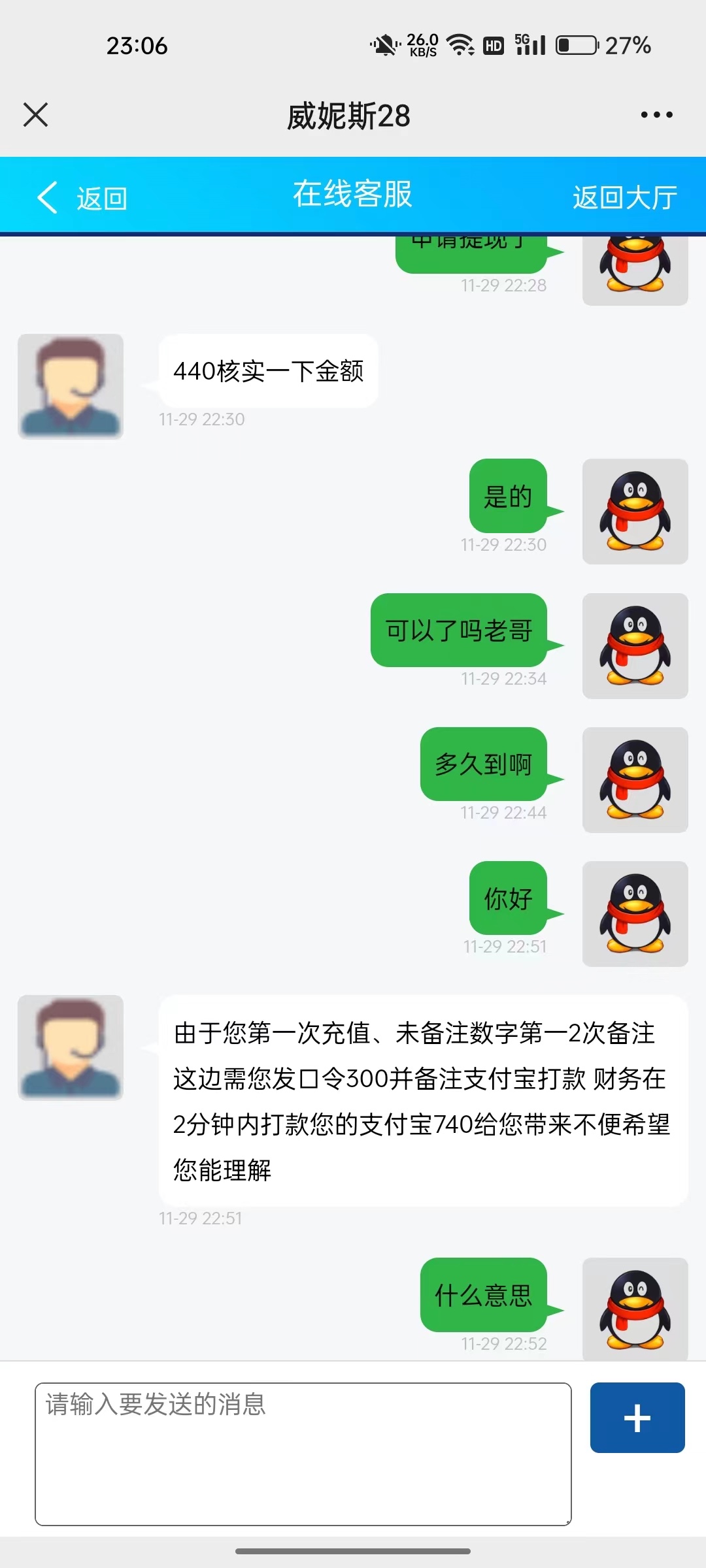 充了7500打3w水要个口没问题吧 他告诉我我没充值