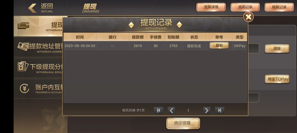 30本金玩电子上到四百提银行卡给我拒绝提现 想着不给提就算了 然后去梭哈Ag 玩到一千块 提到钱能钱包 到账了 之后就一直充提 玩Ag一直陆陆续续赢 然后提钱能钱包 又冲又提 最高上到2.1w 而且2.1w都全部到账钱能钱包了 反水撸了一千多 加上钱能钱包存取款那个活动 存取款彩金撸了一千多 总是感觉还能赢。上头两个小时全部挂完 一下清醒了 人心不足蛇吞象 狗庄不怕你赢 钱 就怕你不玩 输完了 睡得着了