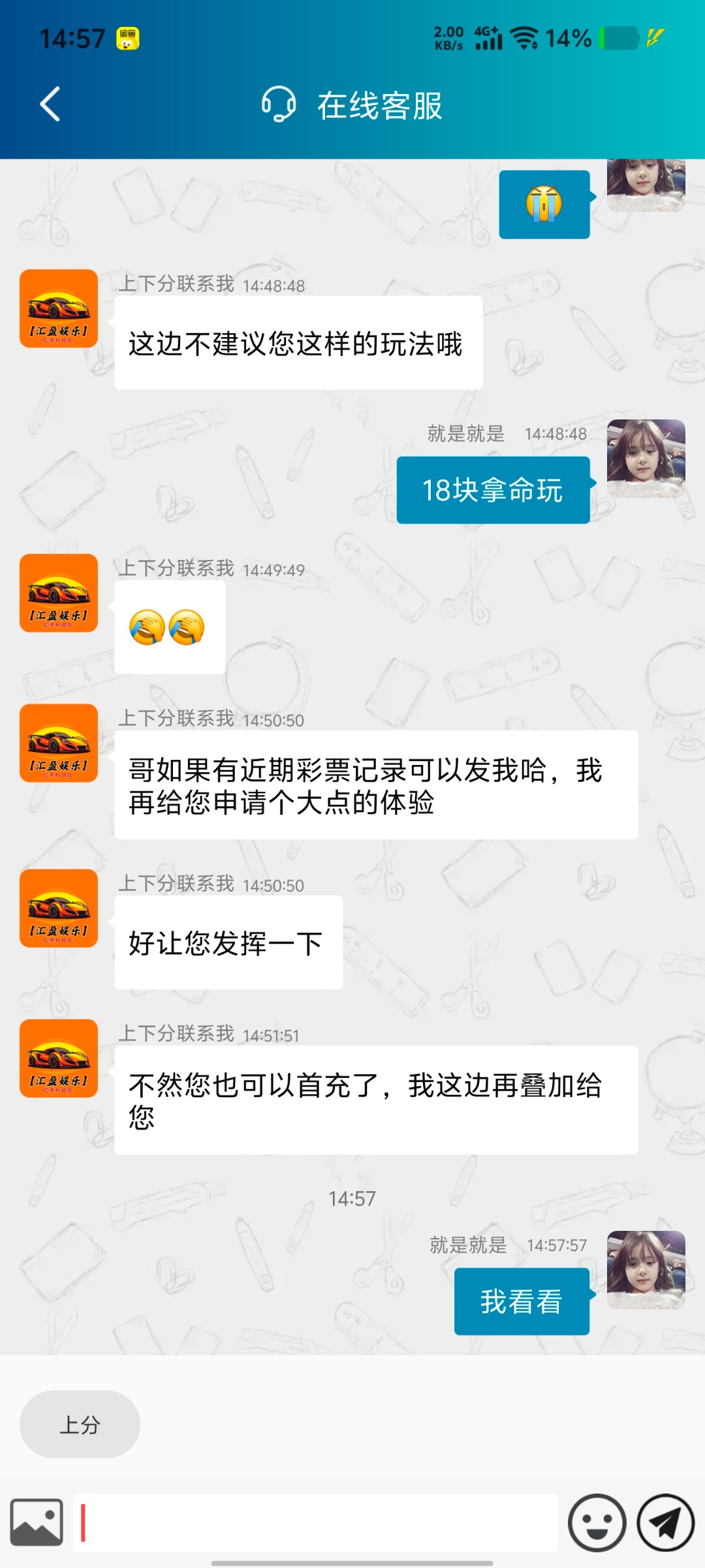 xian8849: 你想他的彩金他想你的本金