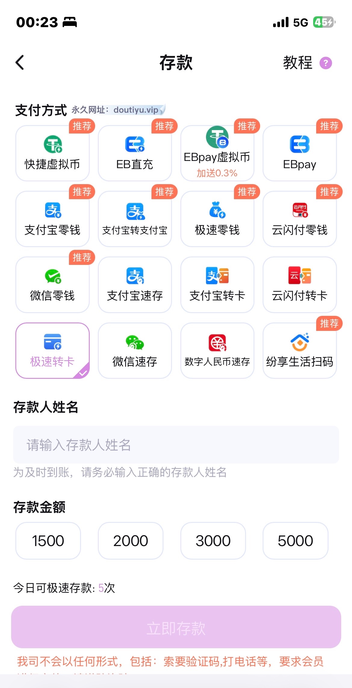 现在很多野鸡台子可以白嫖只要通道有那种银行卡转账或者支付宝啥的或者找客服要卡号之类得只要充值得时候显示需要上传频证就可以白嫖几千块钱 速度来