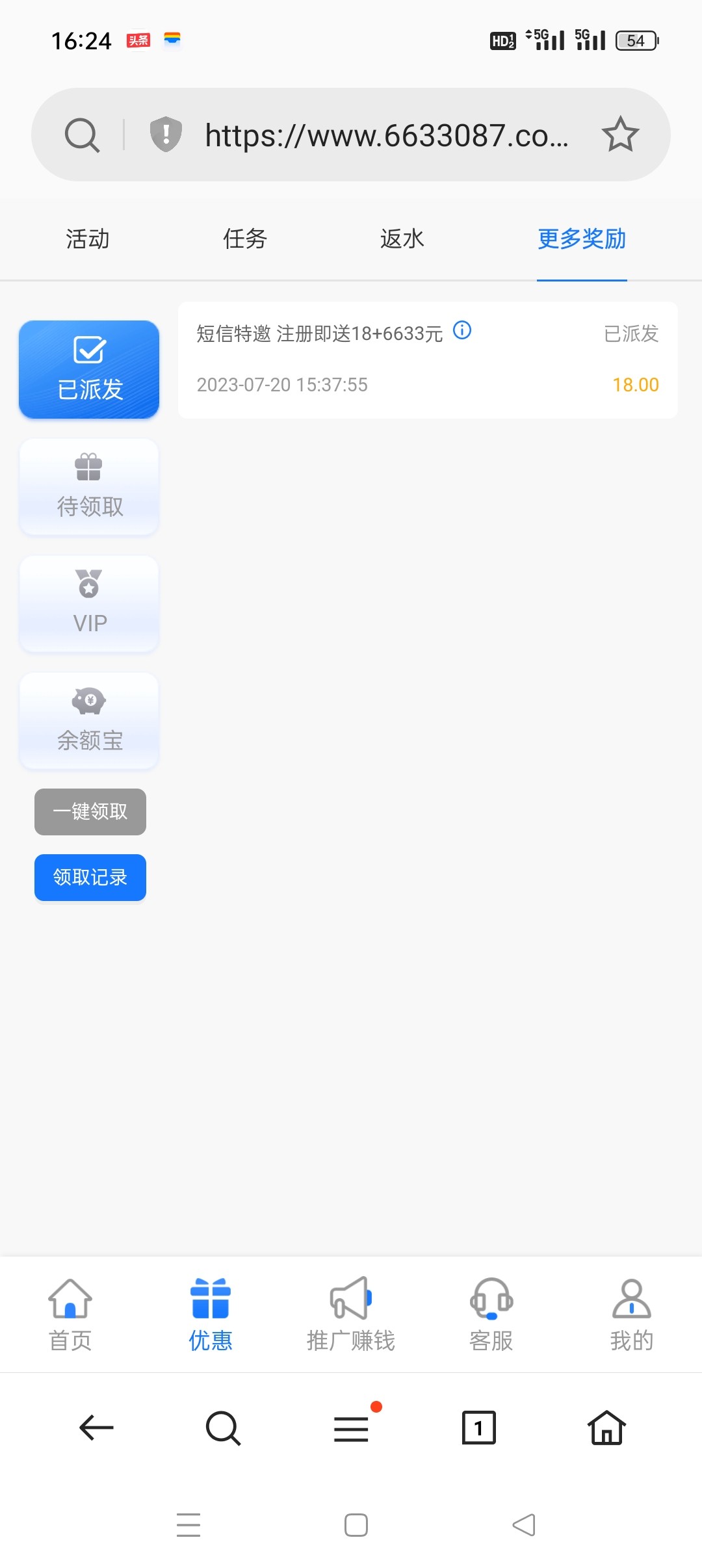 短信特邀碰瓷送18