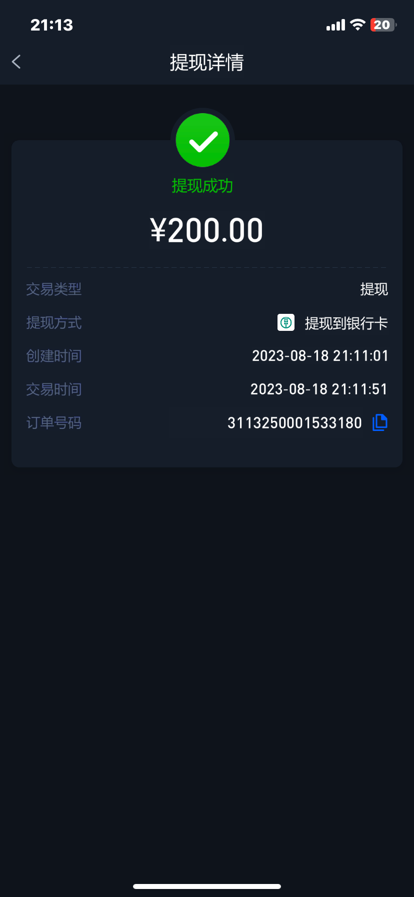 出了200到账了