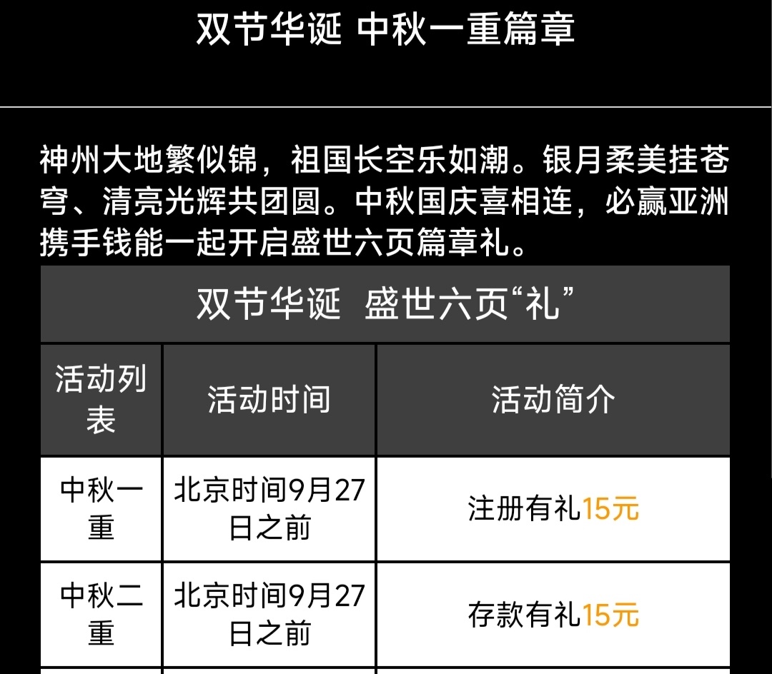 老用户中秋节期间回馈15,详细介绍看活动。