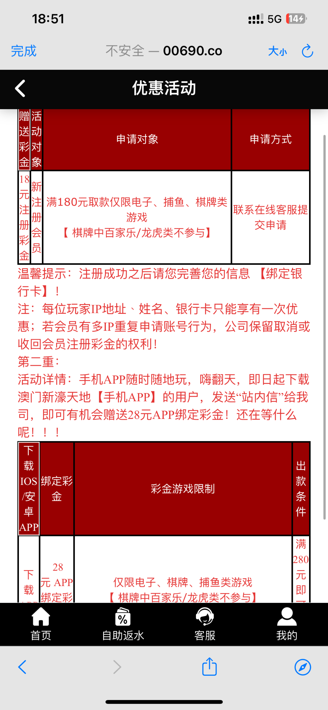 新用户注册绑卡联系在线客服申请18元注册彩金 苹果手机的可以下载app发送站内信再领28彩金 游戏和提款限制自行查看优惠