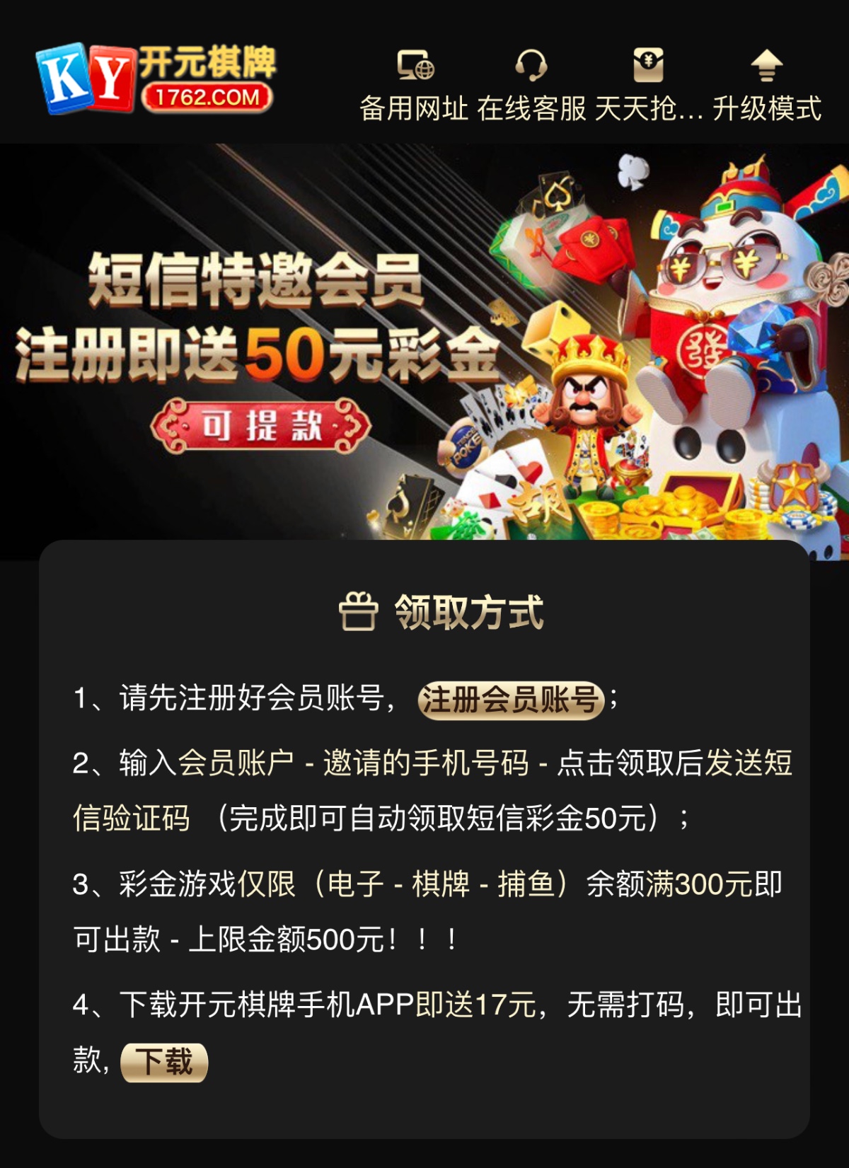 新用户注册下方链接自助申请秒送50/500提现。