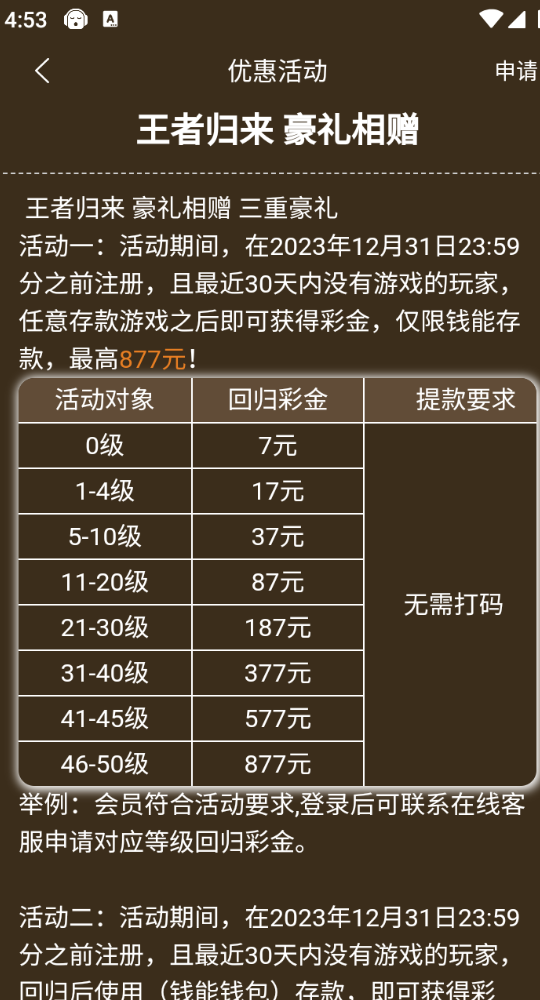 您好,这边为您查询,您申请的彩金优惠部门核对无法为您派送,请您多多关注本公司更多的优惠活动,谢谢您~