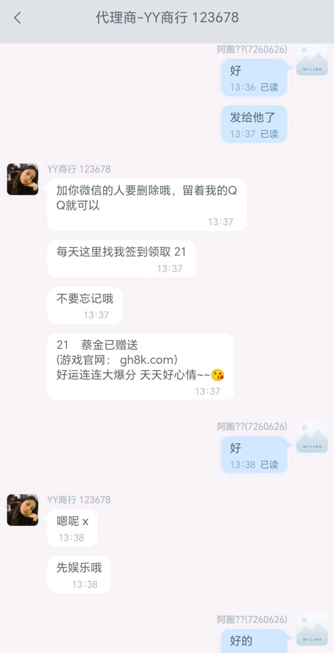 然后联系代理申请回归彩金 我的是每天21 ,在充值那个地方联系