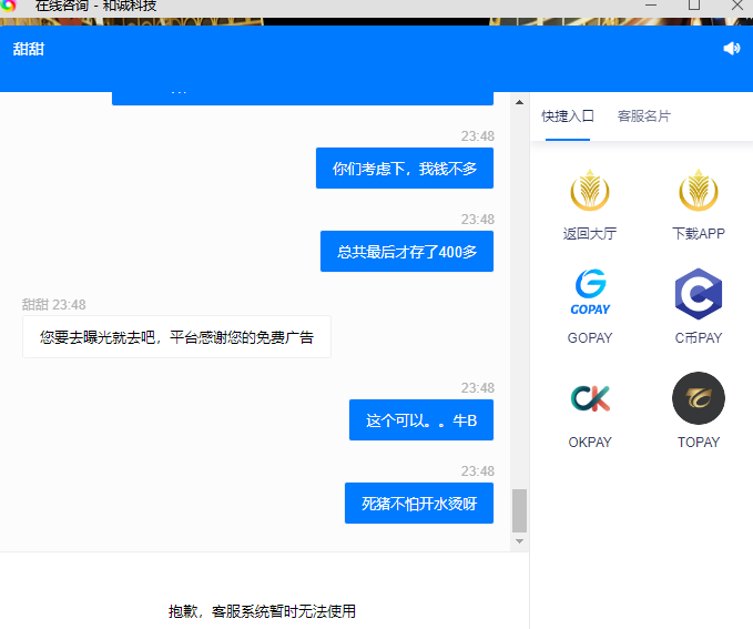 骂了直接秒关闭客服