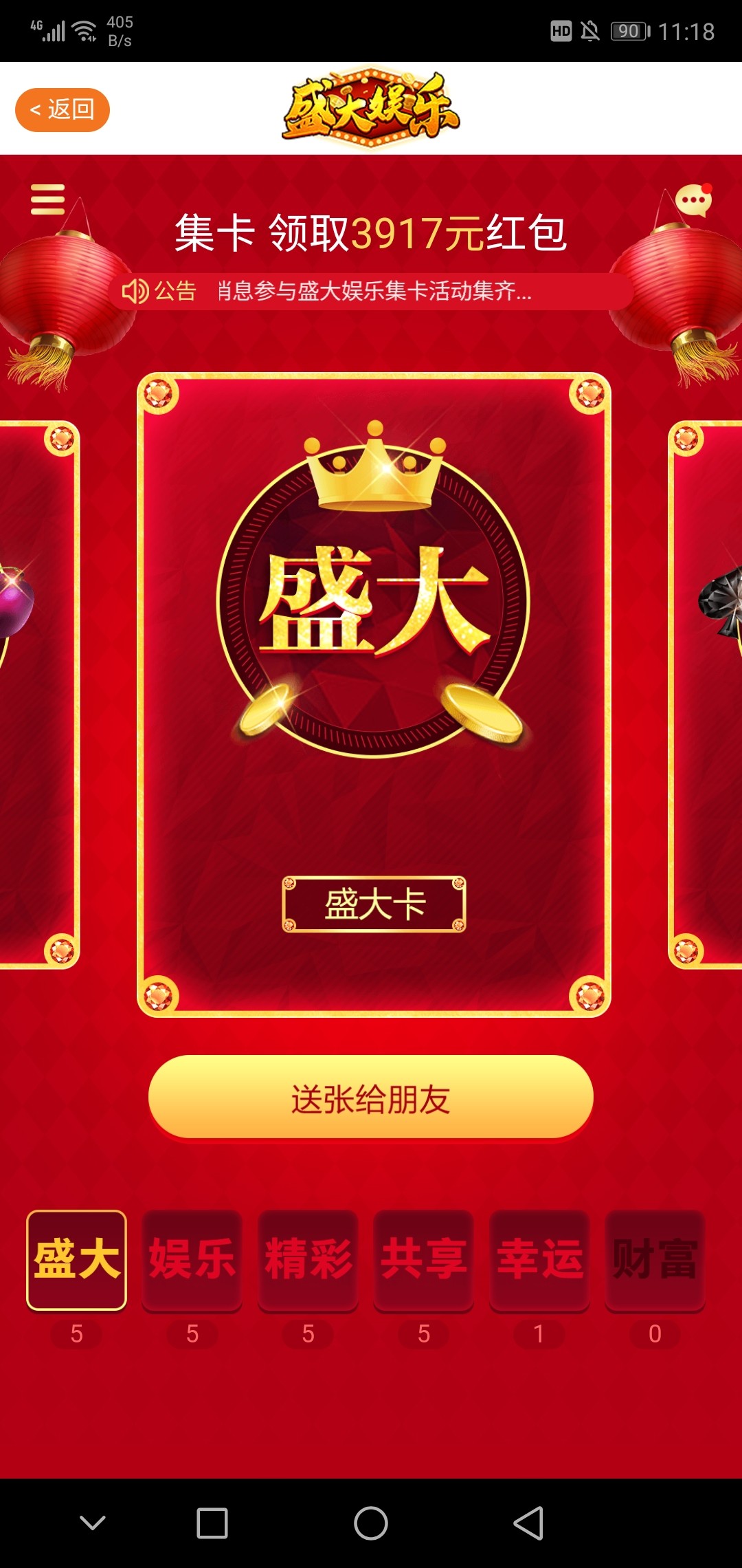盛大娱乐集卡抽奖