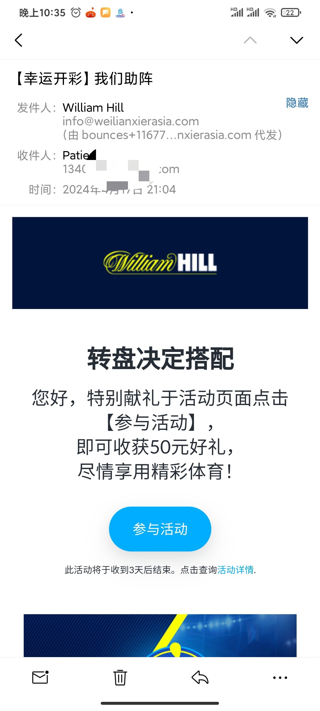 收到邮件的100%有,没收到的可以登陆看看,威廉我收到了,韦德没收到