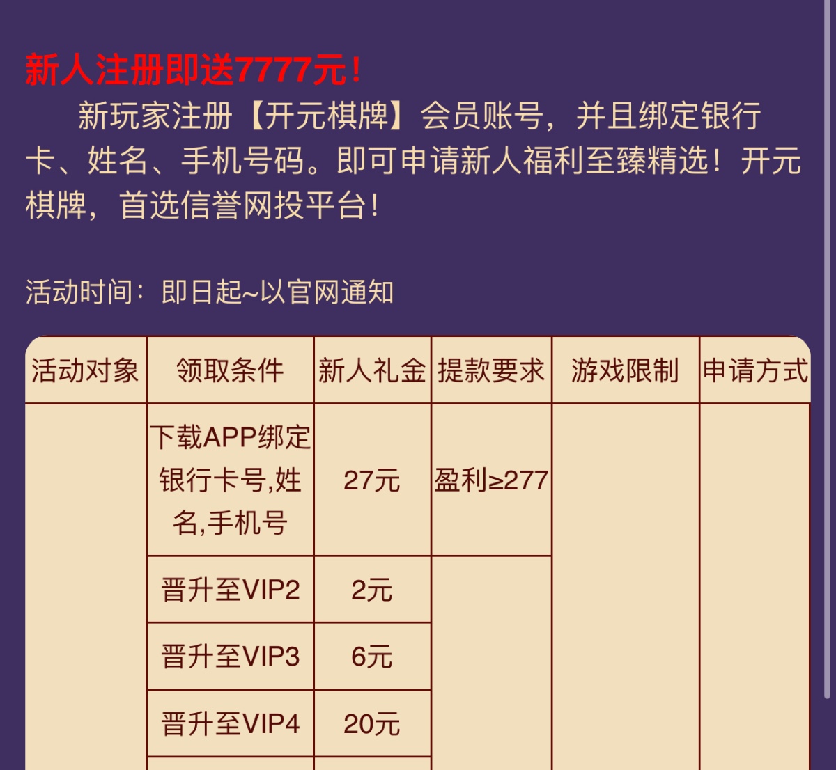 新用户注册绑卡完善资料,下方申请27彩金最低227提现具体