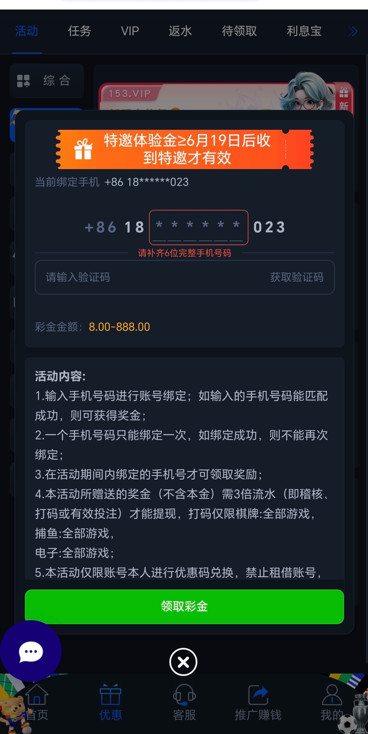 输入手机号验证是特邀秒38彩金,三倍流水提现限制捕鱼电子棋牌