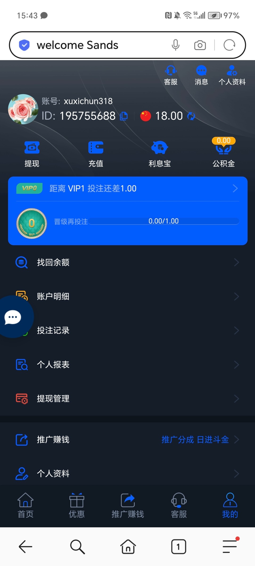 这种台加泡泡客服都能领18彩金,我三个都领到了,你们自己去试试,下面三个台都有这个活动赶快去试试吧,领不到一个总会领到一个