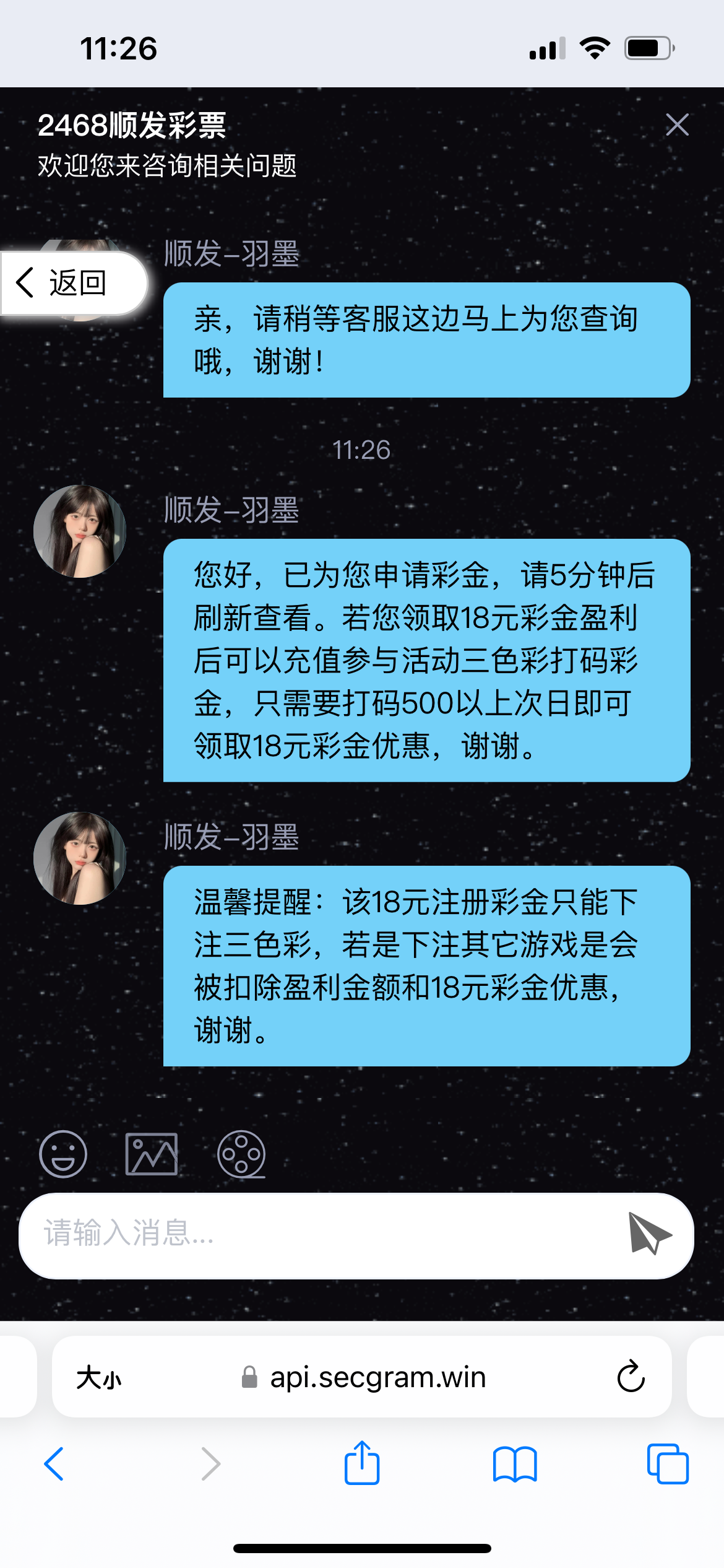 49图库上面广告栏的几个平台都送18,注册完善信息找客服申请,会问你哪里看到的就去49图库截图,我没打出来。