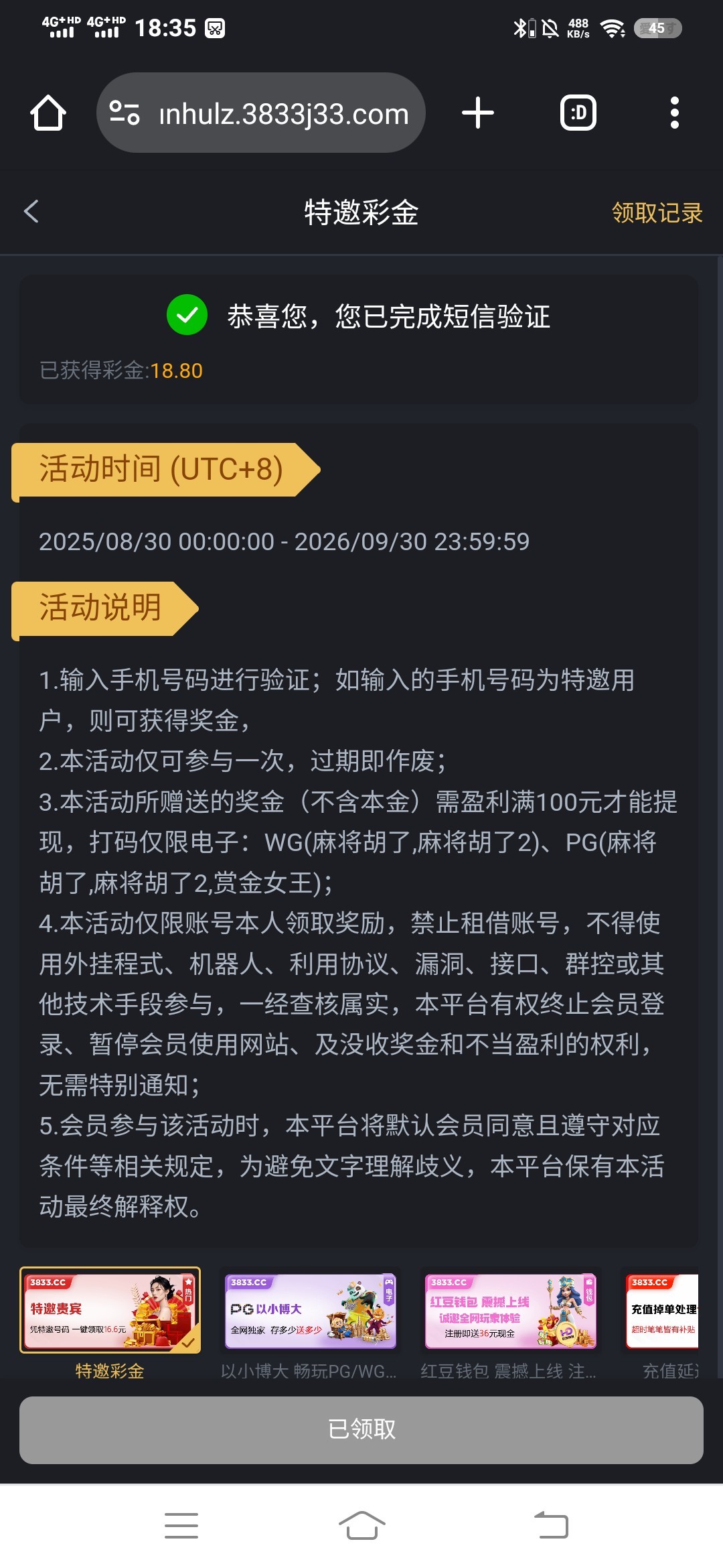 碰瓷特邀彩金