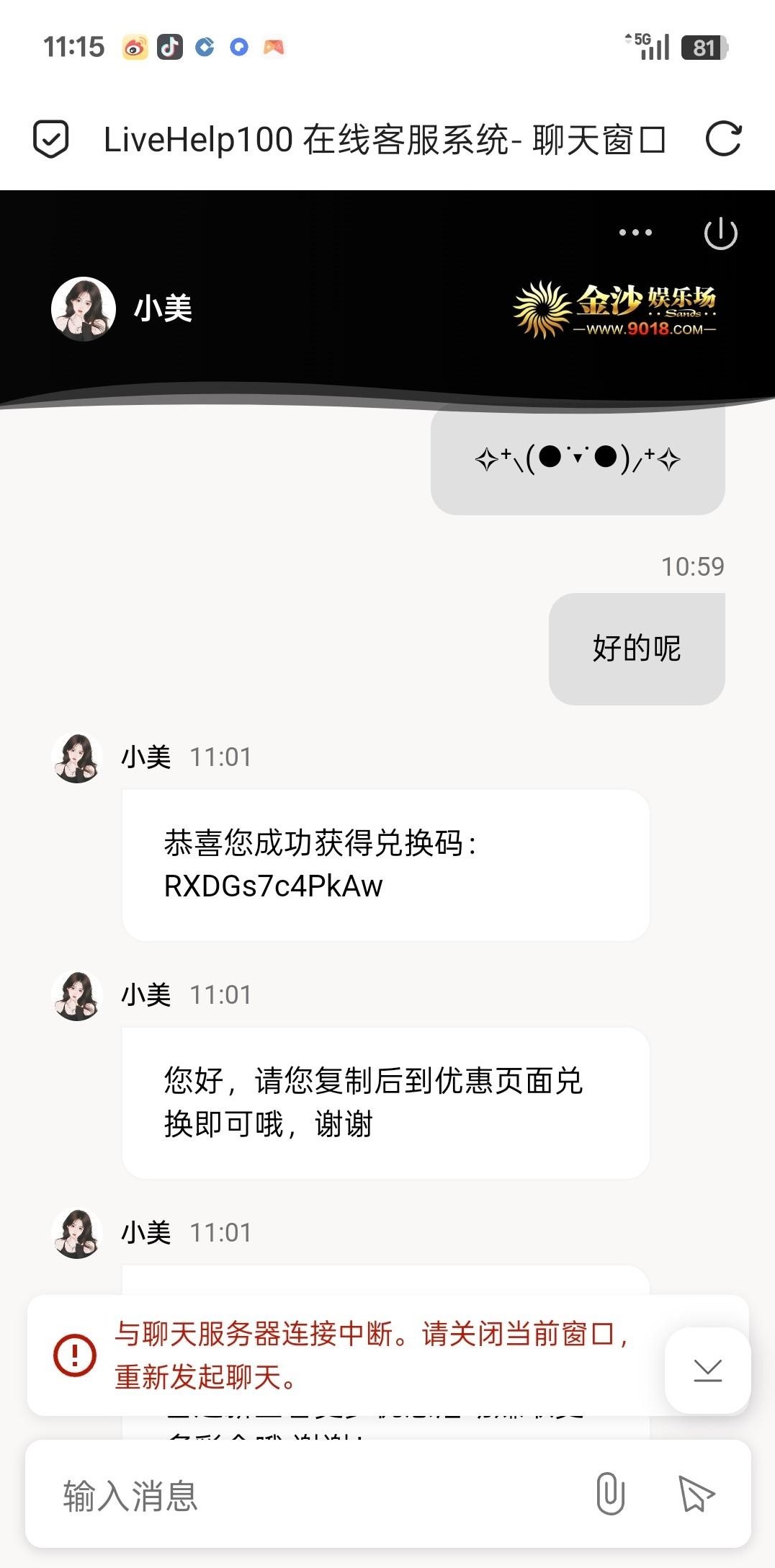 金沙9018找在线客服要兑换码,可领取18-888彩金,我找在线客服领取到了,客服说提款不需要充值! 9018.com