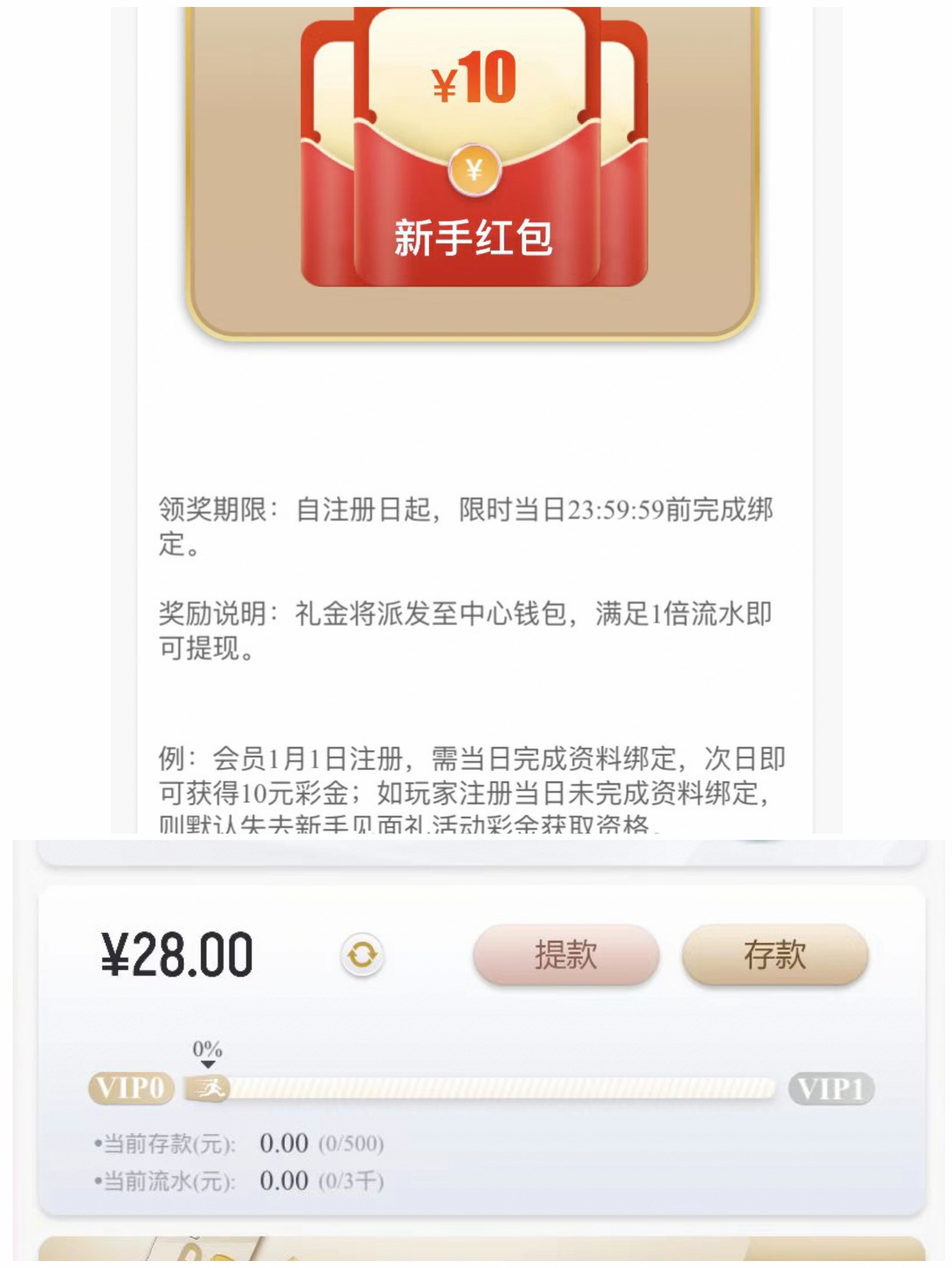 没送28有注册10彩金,注册好完善资料次日送10彩金,没送找客服申请