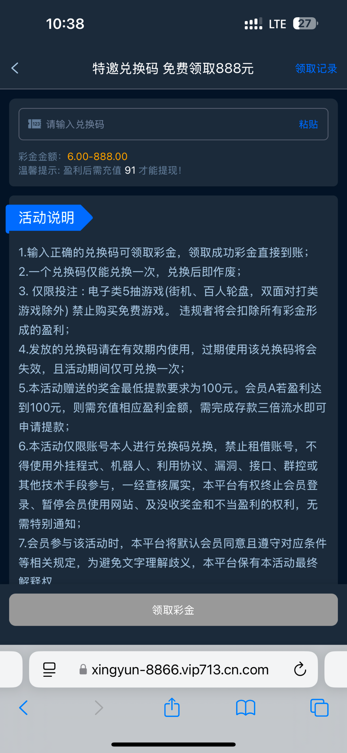 我也想打100啊  12倍流水  我不如直接转u你吧