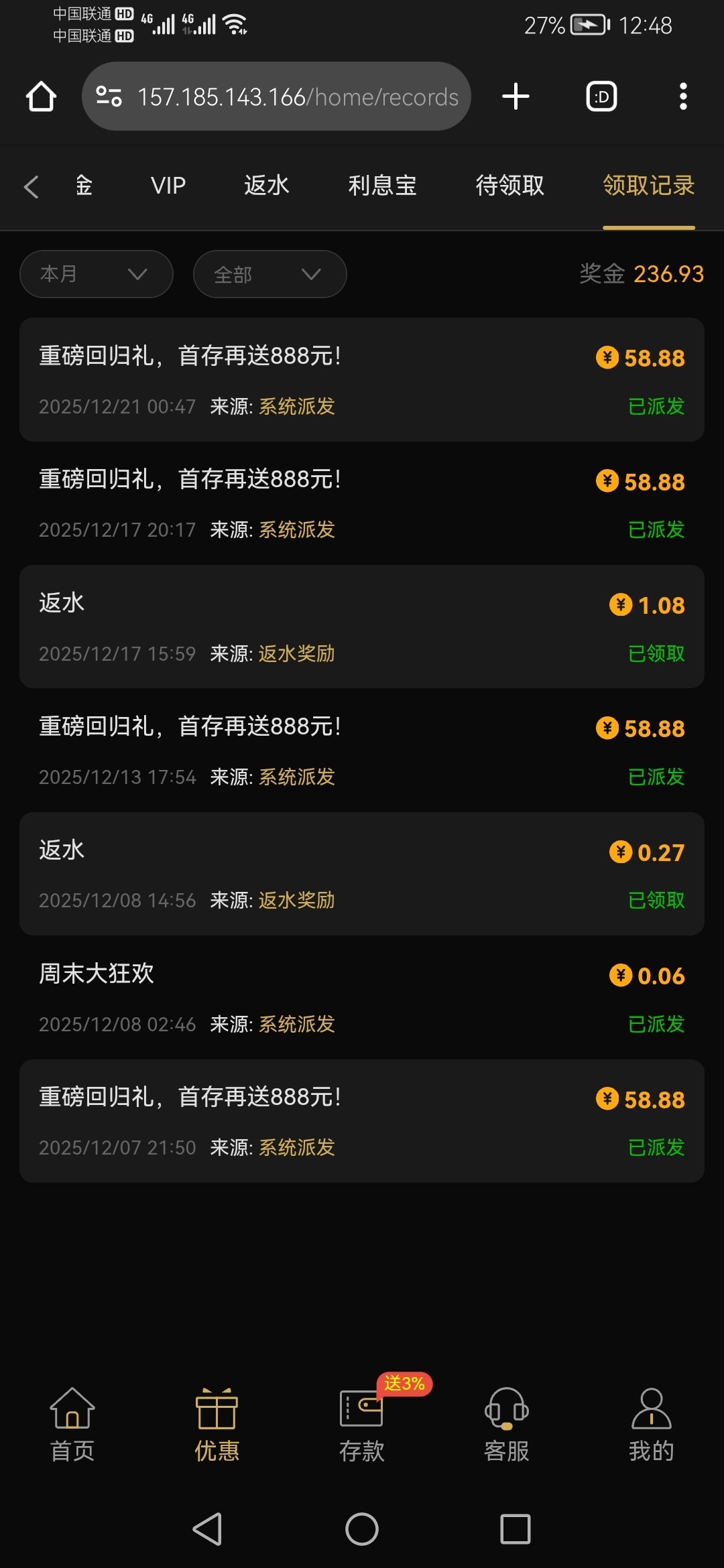 官网没这个活动,得存款