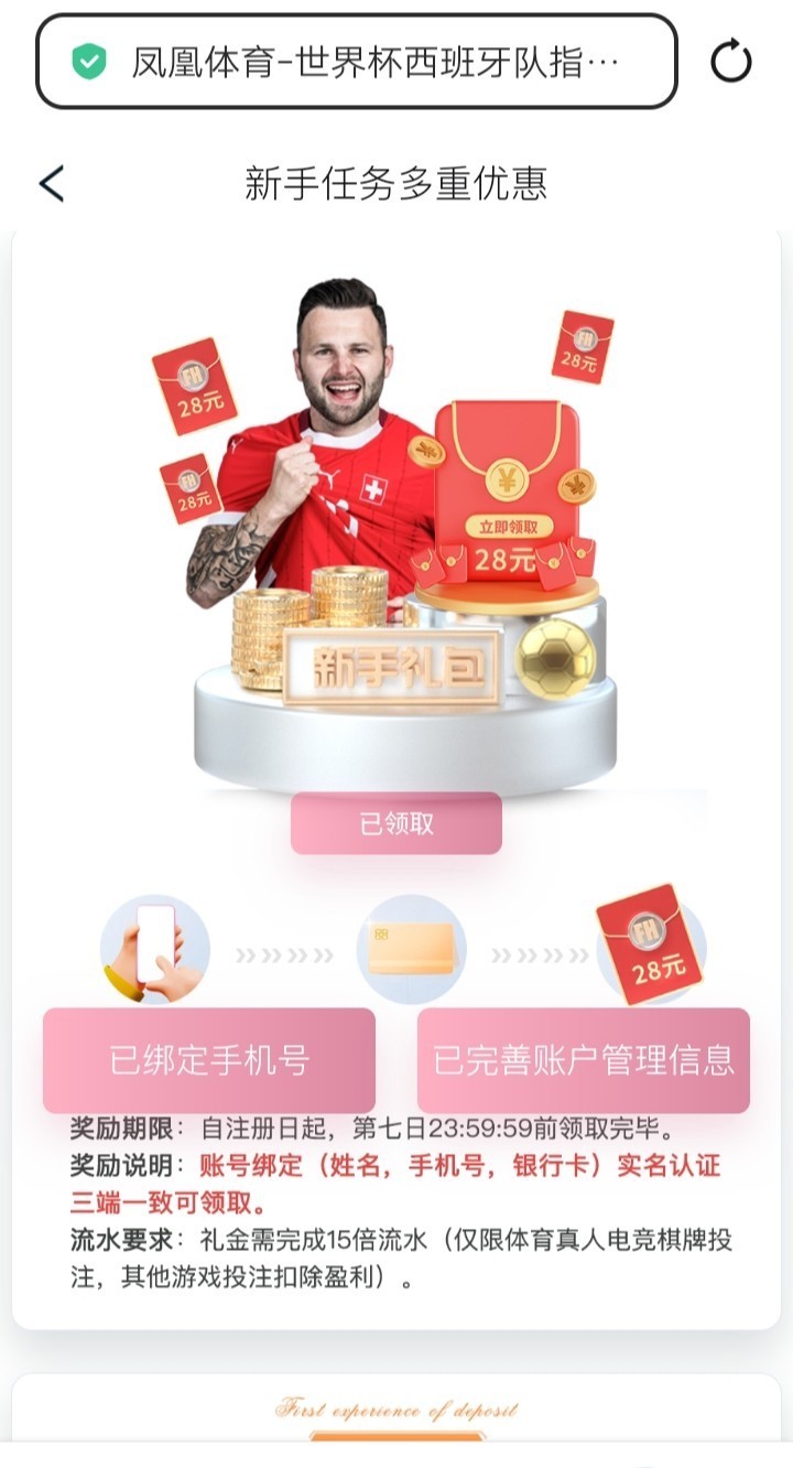 注册绑卡绑定手机号,看图优惠中心自助领取28提,彩金只能玩体育真人棋牌。