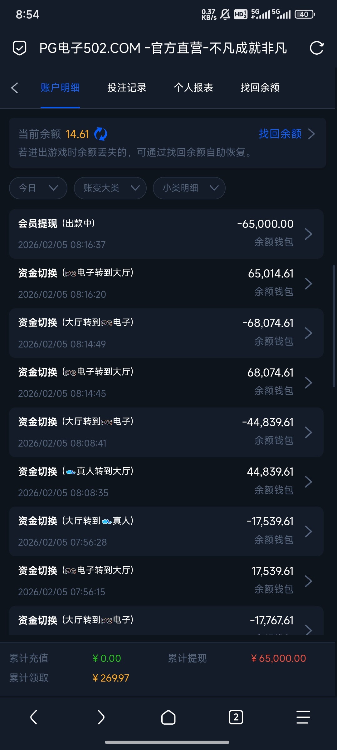这个台我就上个月充过一次50u,今天上号看有两百多彩金我就去玩开20拉麻将,爆了两千多果断开100一拉,一共爆了1.7w,然后去玩真人下了几把对子跟和,中了4w多,本来这个时候我就想提现了,但是觉得它会黑我,就想着去电子刷点流水,谁知道又爆了,抱着提现被黑的心理,等了40多分钟居然给我出了,这个台昨天是不是有大哥输太多了,良心发现给我出了。
