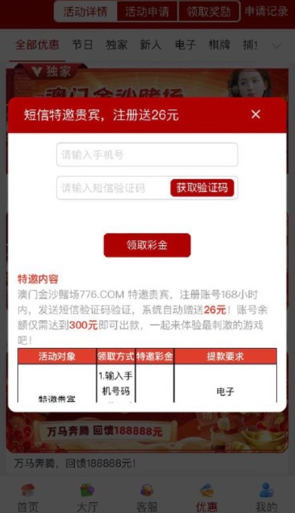 【金沙776】 短信彩金