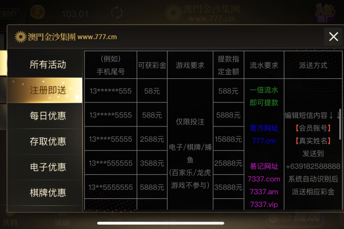你翻一下这里的帖子,没有30起码有15个有豹子彩金的